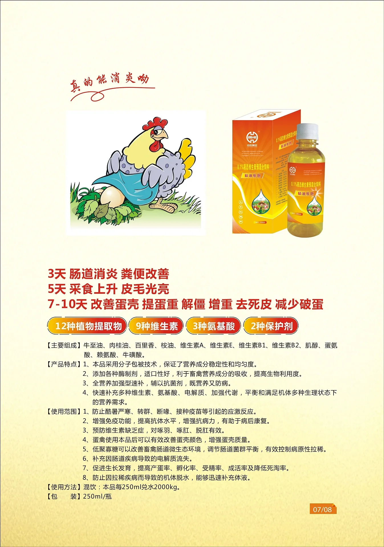 2、增强免疫功能,提高抗体水平,增强抗病力,有助于病后康复,预防维生素缺乏症,对啄羽、啄肛、脱肛有效。
